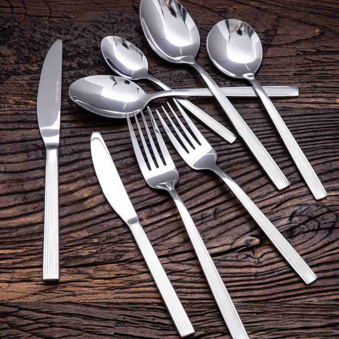 - Includes - 6 Dinner Knives, 6 Dinner Forks, 6 Dessert Knives, 6 Dessert Forks, 6 Dessert Spoons, 6 Soup Spoons, 6 Teaspoons and 2 Serving Spoons.