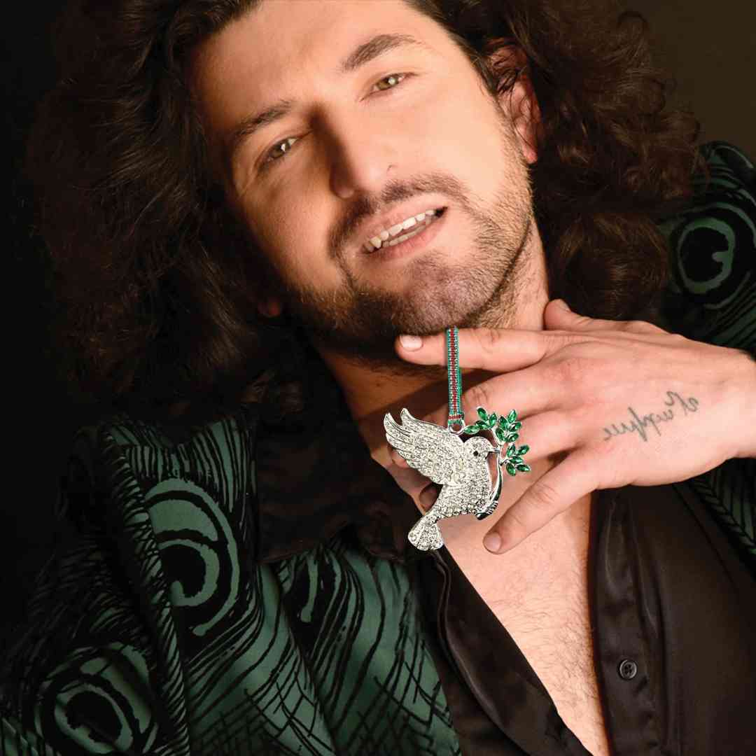 - This beautifully crafted decoration features a graceful dove encrusted with sparkling clear crystal stone settings carrying a delicate olive branch in its beak.