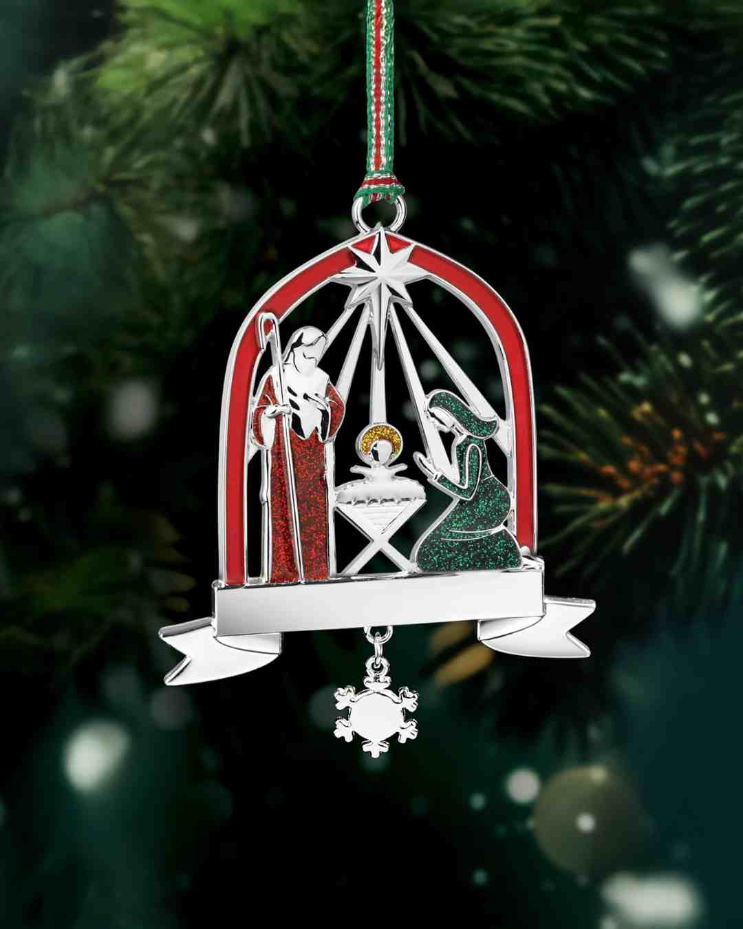 - Update your festive collection with this superb silver plated Nativity scene Christmas tree decoration from Newbridge Silverware.